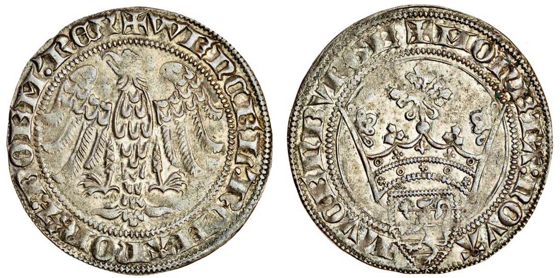 Luxembourg, Wenceslas II (First reign, 1383-88), Gros, 3.013g, + wencel romanor z boem rex, eagle, rev. + moneta nova lvcenbvrge, large crown over shield (BV.165; de Mey 167; Probst 163.1), very fine, toned