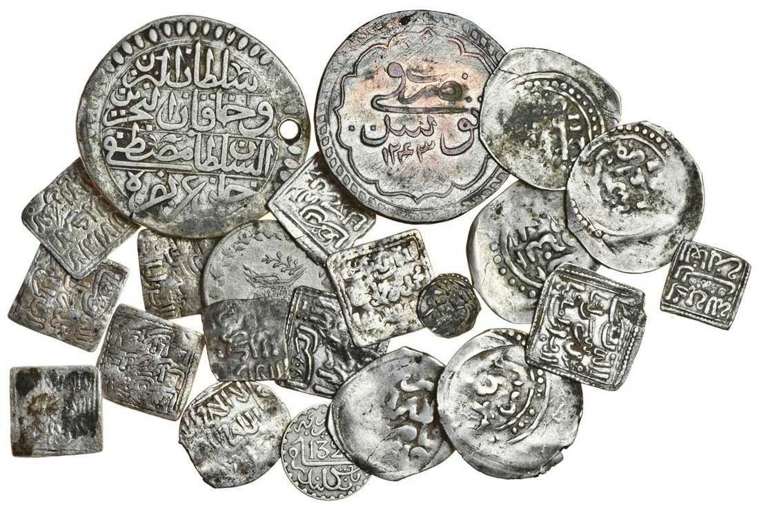 Morroco, Sulayman II (1793-1822), Dirhams (5), 'Abd al-Aziz (1894-1908), 1/20-Rial, AH1321 (KM 18.1), Dirhams poorly struck, generally fine for type; Muwahhid / Hafsid, Anonymous square Dirhams (11), Tlemcen (1), Marakesh (1), but mostly without mint name, Dirham, Qirat, generally about fine to good fine; Tunisia, Mustafa III (1757-75), Piastre, AH1186, Mahmud II (1808-39), Piastre, AH1243 (KM 57, 90), the first pierced, about fine, the second fine ; Turkey, Abdul Mejid (1839-61), billon 20-Para, AH1255 / 3 (KM 653), fine (22)