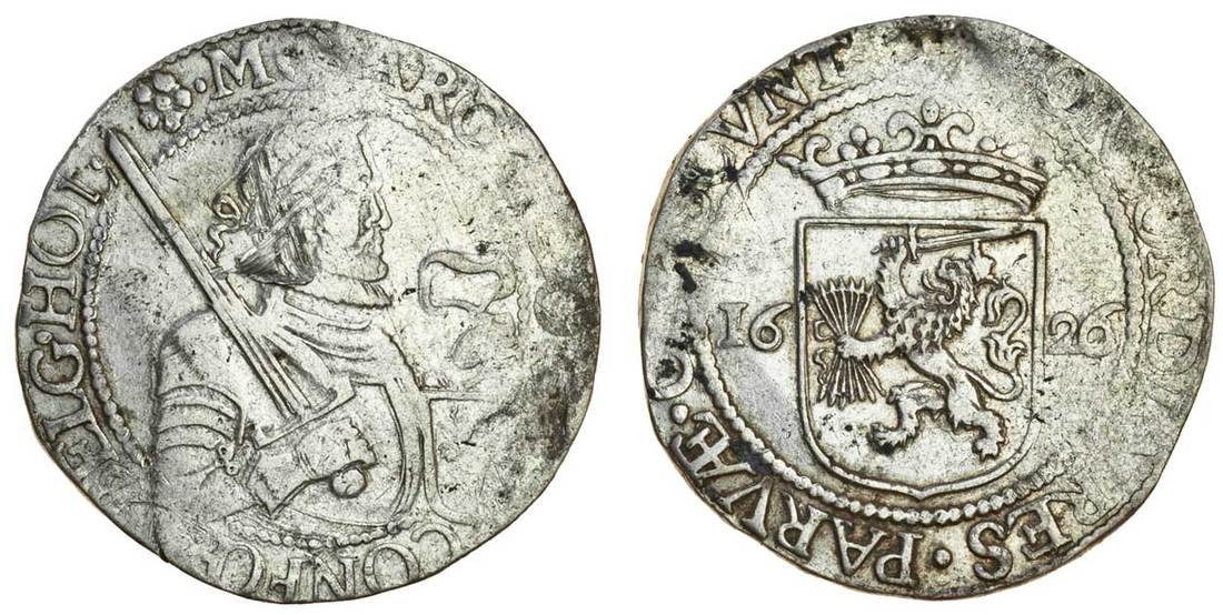 Netherlands, Rijksdaalders (5), Gelderland, 1618, 1649, Zeeland, 1621, 1654, and West-Friesland, 1619, and a Half-Rijksdaalder, Holland, 1626, this date not listed in Delmonte, all excavated condition, gently cleaned but still with verdegris and other deposit, fine or better (6)