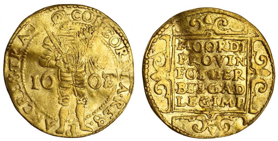 Netherlands, Utrecht, Ducat, 1608 over 3, knight, rev. legend on tablet (Del.963; F.F.284), creased, very fine