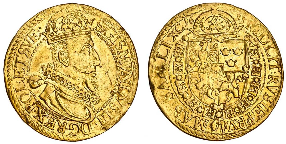 Hutten-Czapski lists a 5-Ducat of 1611, but not a 4-Ducat. In a note to 1273 he states 'Bandtkie, No. 724, et Reichel, No. 883, décrivent une piéce pareille de 4 Ducats de valeur, on recontre souvent des piéces d'or de ce règne, de différentes valeurs frappée au même coin.
