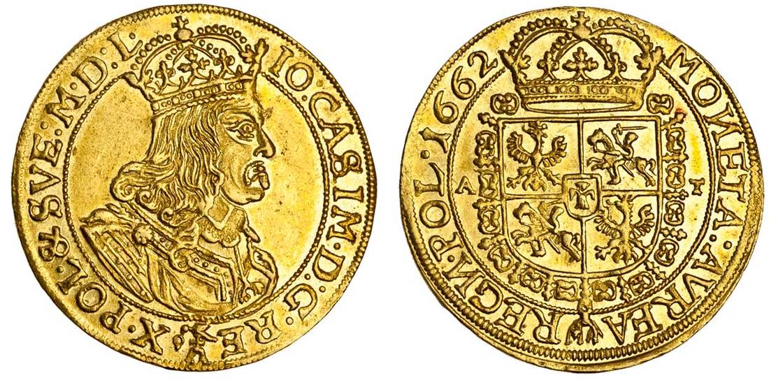 Poland, John II Casimir (1648-68), 2-Ducats, 6.86g, 1662, io: casim. d: g. re - x. pol. & sve: m. d: l., large crowned and cuirassed bust right, rev. moneta:avrea regn. pol. 1662, crowned square topped dividing a-t for Andrzej Tymf (F.89; HCz.2206 - R5), extremely fine and lustrous, rare