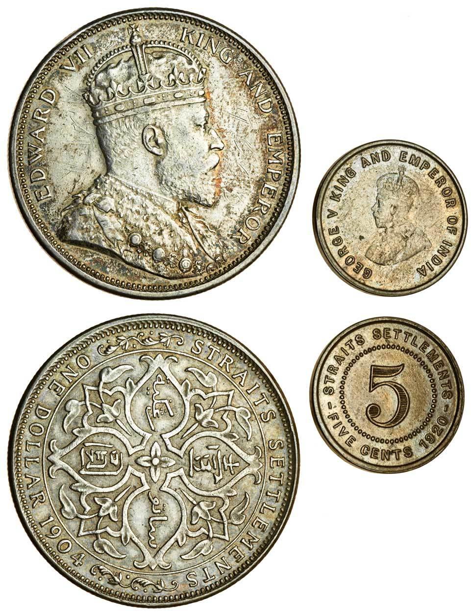Strait Settlements, silver coins (13), Dollars (3), 1904, 1919, 1920, 50-Cents (2), 1908, 1921, 20-Cents, 1935, 10-Cents (3), 1910B, 1918, 1927, 5-Cents (4), 1910B (2), 1918, 1920, and cupro-nickel 5-Cents, 1920 (2), bronze 1/4-Cent, 1916, good very fine and better, some with lustre (16)