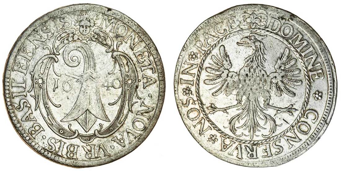 Switzerland, Basel, Taler, 1640, city arms in cartouche, rev. eagle (DT 1337; Dav.4607; Divo 94), cleaned, about very fine