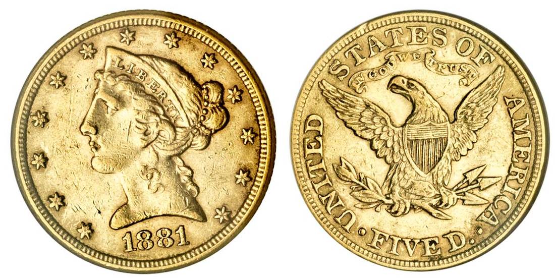 (g) United States of America, 5-Dollars, 1881 in NTC holder graded AU58