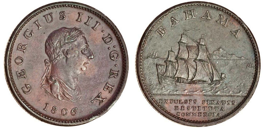Bahamas, George III (1760-1820), Penny, 1806, bust right, rev. sailing ship (KM 1), very fine