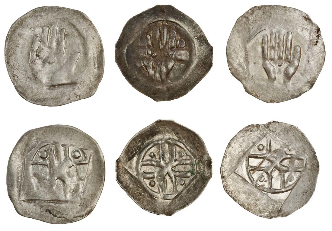 Germany, Schwäbisch-Hall, a small study group of Heller (13), hand, rev. cross, some varieties, pellet on hand, w on hand etc, in envelopes with weights but not further identified, some with old collection numbers, fine to very fine, some extremely fine (13)