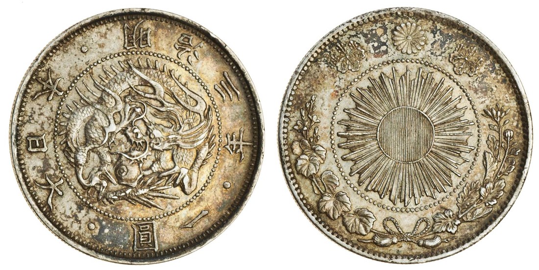 Japan, Mutsuhito (1867-1912), Yen, year 3 (1870), type II, dragon, rev. sun (Y.5.2), very fine, old uneven dark toning