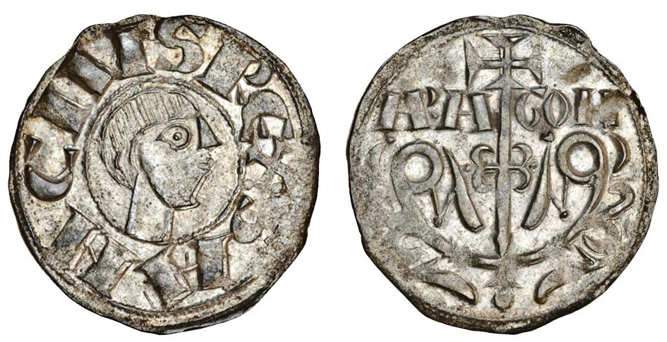 Spain, Aragón, Sancho Ramirez (1063-94), Dinero, 1.391g, (Jaca), sancivs rex, head right, rev. long cross, aragon across field, floral base (Heiss 71.2; MIR 46), good very fine