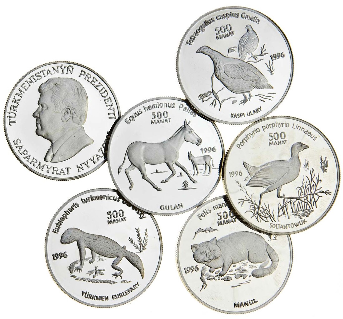 Turkmenistan, endangered wildlife silver proof collection, 500-Manat, 1996 (six coins) and 1999 (six coins), together with a second set of 1996 (six coins) (KM 6-11 and 14-19), all brilliant uncirculated, in their three cases of issue with certificates (18)