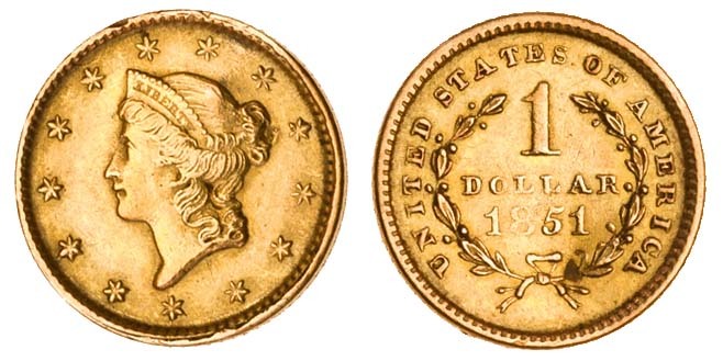 (g) United States of America, gold Dollar, 1851, dented, very fine, and a George Washington small medal, 1776-1976, .500 gold, extremely fine, in fitted case (2)
