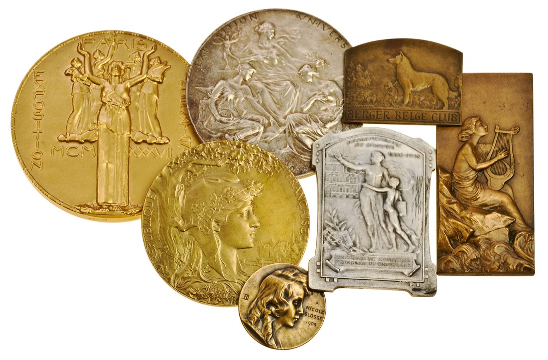 European 19th and 20th century medals and plaquettes (20), including International Exhibitions (9), of Paris 1889, bronze, 63mm., awarded to donald durrie and co., Paris 1889, bronze, 50mm., Paris 1900, gilt-bronze, 63mm., Liege 1905, silvered-bronze, 70mm., Ghent 1913, bronze, 55mm., Barcelona, 1929, bronze and gilt-bronze, 50mm., both in cases of issue, Paris 1937, gilt-bronze Arts et Techniques Jury medal, 77mm., awarded to adolphe chapuis chef de service à l'agence comptable, in case of issue, and eleven other bronze, gilt-bronze, and silvered-bronze medals and plaquettes, very fine to extremely fine (20)