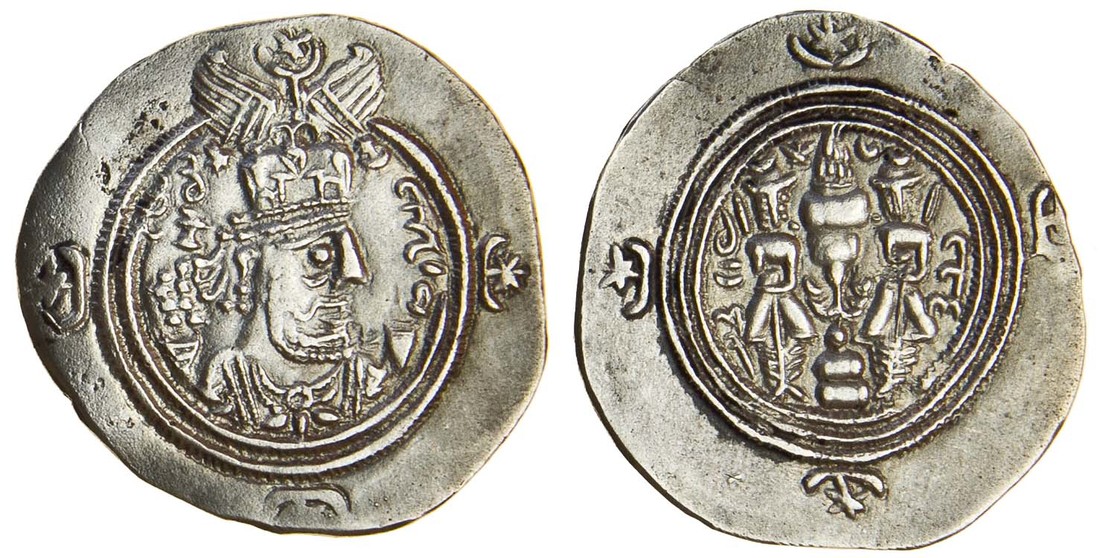 Sasanian, Yazdgard III (632-51), Drachm, 3.92g, Sakastan, yr.19, crowned bust of king right, double border around, rev. fire altar and attendants within triple border (Sel.74; Göbl 235), about extremely fine, scarce
