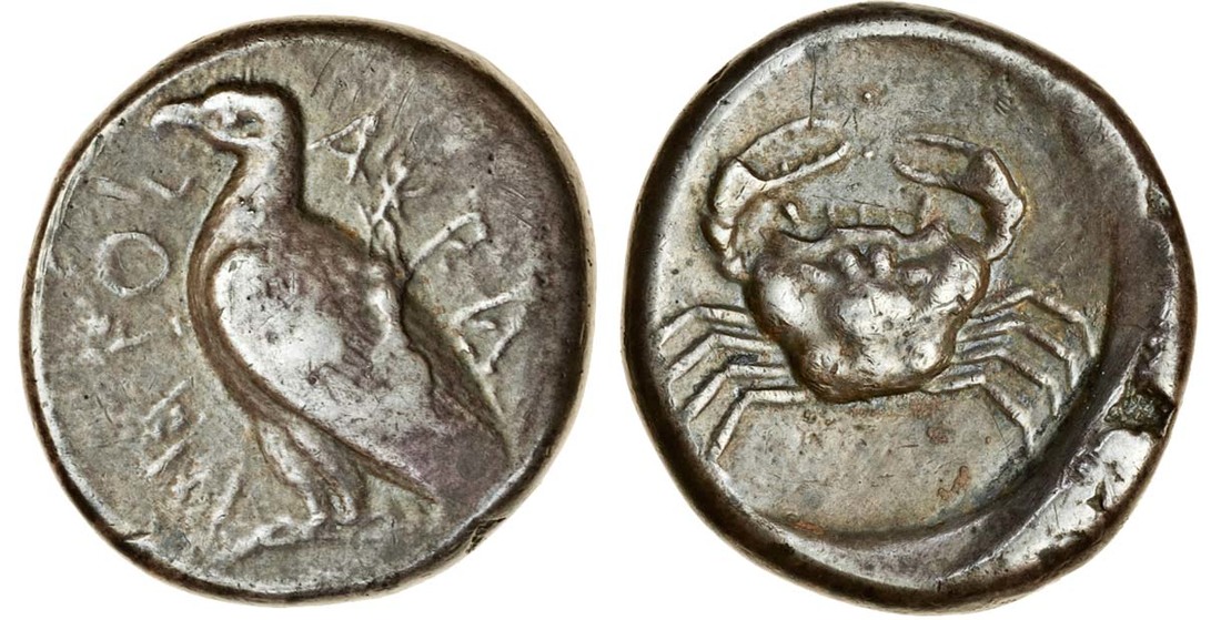 Sicily, Akragas (c.460-446 BC), AR Tetradrachm, 15.49g, eagle standing left, akpaanto, rev. crab (cf. SNG ANS 965), toned, almost very fine<