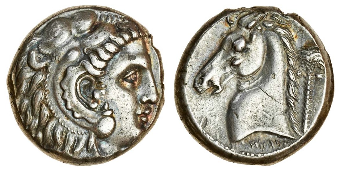 Siculo-Punic (c.300-290 BC), AR Tetradrachm, 17.10g, head of young Herakles right, wearing lion's skin, rev. head and neck of horse left, palm-tree behind, Punic "mhmhnt" (Jenkins 302), good very fine