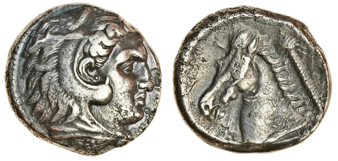 Siculo-Punic (c.300-290 BC), AR Tetradrachm, 17.10g, head of young Herakles right, wearing lion's skin, rev. head and neck of horse left, palm-tree behind, Punic "mhsbm"(?) below (cf. Jenkins 413), minor die-flaw on lion's skin, about very fine