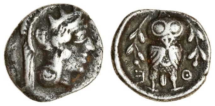 Attica, Athens (c.449-420 BC), AR Hemidrachm, 1.91g, helmeted head of Athena right, rev. ae around owl standing facing between olive-sprays (Dewing 1603), very fine