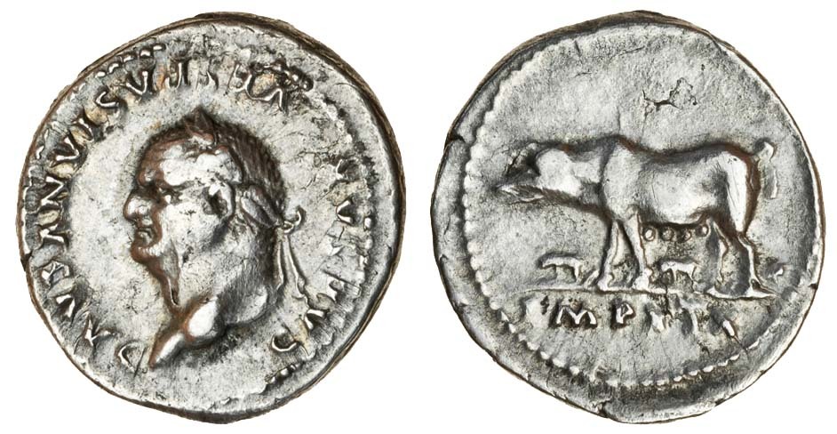 Vespasian (AD 69-79), AR Denarius, 77-78, laureate head left, rev. sow standing left amid piglets (RIC 983; RSC 214), very fine