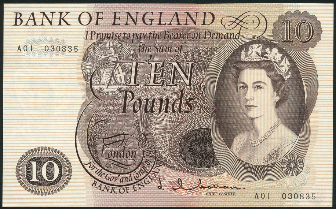 Bank of England, J.Q.Hollom, £10 (3), ND (1964), all prefix A01, brown, Elizabeth II at right, Britannia top left centre
