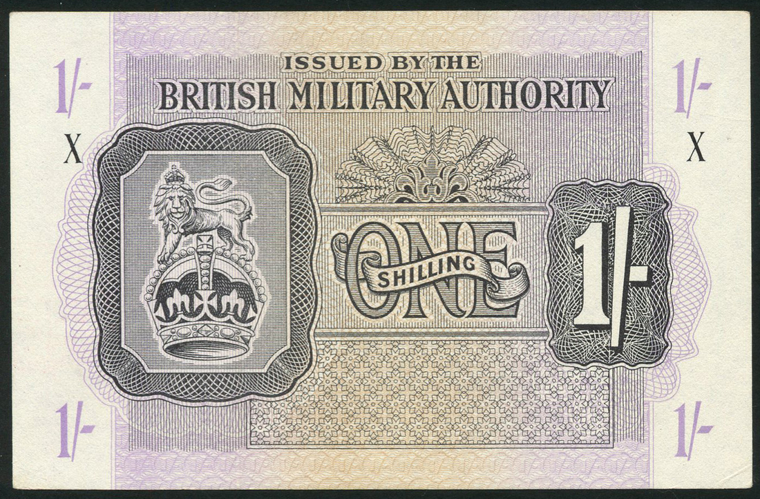 British Military Authority, 1 shilling, ND 1943), SERIES X (Pick M2), about uncirculated to uncirculated, ex-Warburton