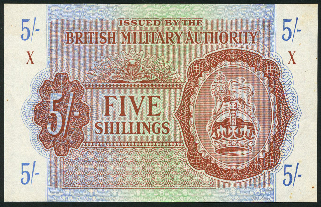 British Military Authority, 5 shillings, ND (1943), SERIES X (Pick M4), extremely fine to about uncirculated