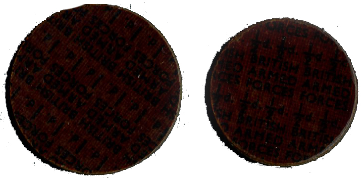 British Armed Forces, 1/2 and 1 penny, ND (1946), black text on circular brown card