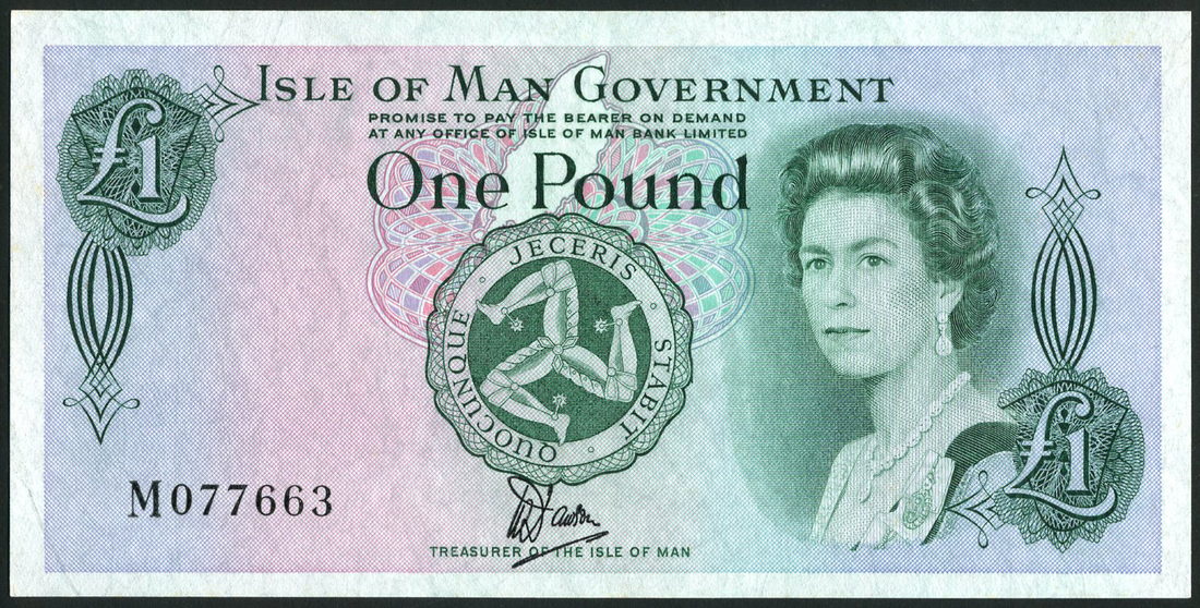 Isle of Man Government, a group of £1, ND (1983), serial number M070279-81, M077661-3, Dawson signature variety, green on multicolour, portrait of Queen Elizabeth II at right, triskeles at centre, reverse St. John's Church on Tynwald Hill,