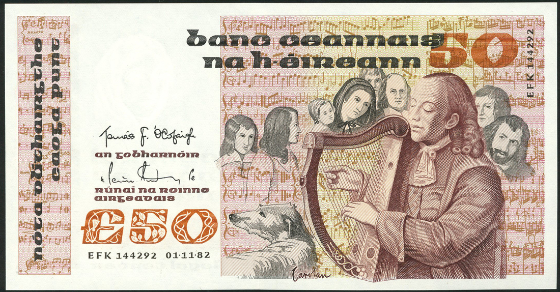 Central Bank of Ireland, £1 (5), 1981, £1 (4), 1982, £1 (5), 1986, £5, 1980, £10, 1989, £20, 1986 and £50, 1982,