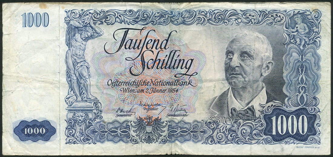 Austria, a group of notes comprising, 5 gulden, 7 July 1866, 20 shillings, 2 January 1950, 100 shillings, 3 January 1949, 500 shillings, 2 January 1953, 1000 shillings, 2 January 1954, 100 shillings, 1 July 1960, 50 shillings, 2 January 1986, and, 5000 shillings, 4 January 1988