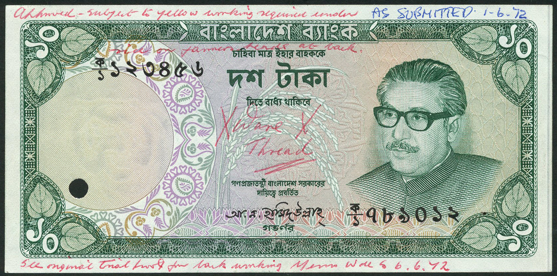 Bangladesh Bank, 100 taka, ND (1972), serial number Z0135062, brown om multicolour underprint, portrait Sheikh Mujibur Rahman at left, value in each corner, ornate border, reverse, boats on river