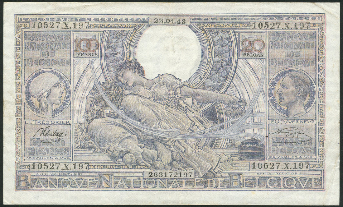 Banque Nationale de Belgique, 5000 francs (3), 7 September 1977, 12 September 1977, ND (1982-92), green and multicolour, portrait Andre Vesalius on first two, Guido Gezelle on third, also, 5 francs, 1938, 100 francs, 1943, 20 francs, 1956, 100 francs, 1972, 200 francs, ND (1995), 1000 francs, ND (1980-96)