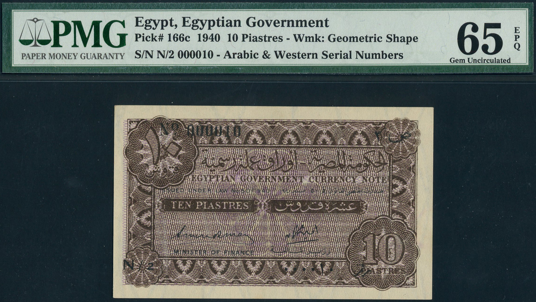 (Pick 166c, Hanafy M2), in PMG holder number 65 EPQ gem uncirculated, a rare 'Royal Number', a superb note