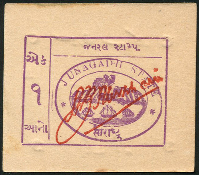 India, Junagadh and Sailana Governments, 5 notes comprising, 1 anna (4), 1943, mauve, serial numbers34602, 34604, 34606 and 34653, 1 anna, ND, portrait Dileep Singh