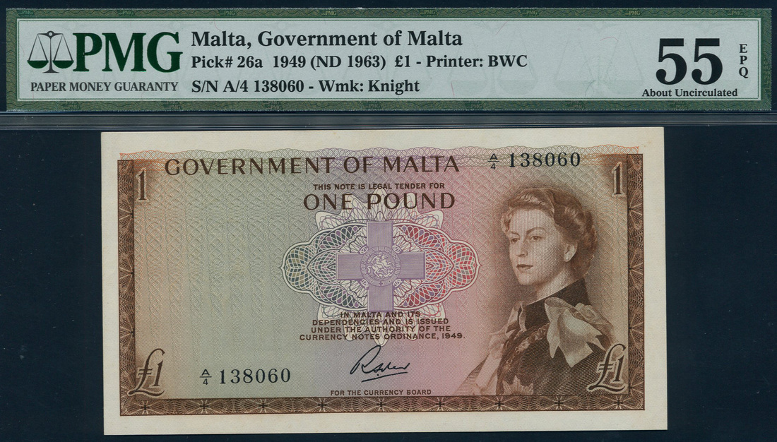 (x) Government of Malta, £1 (3), ND (1963), serial numbers A/4 138060/061/062, brown and multicoloured, Elizabeth II at right, George Cross at centre, Soler signature