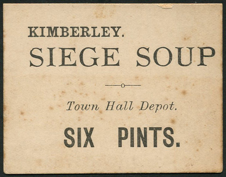 Siege of Kimberley, soup ticket for 6 pints at Town Hall depot, ND (1899-1900), type 1, black text on pale beige card