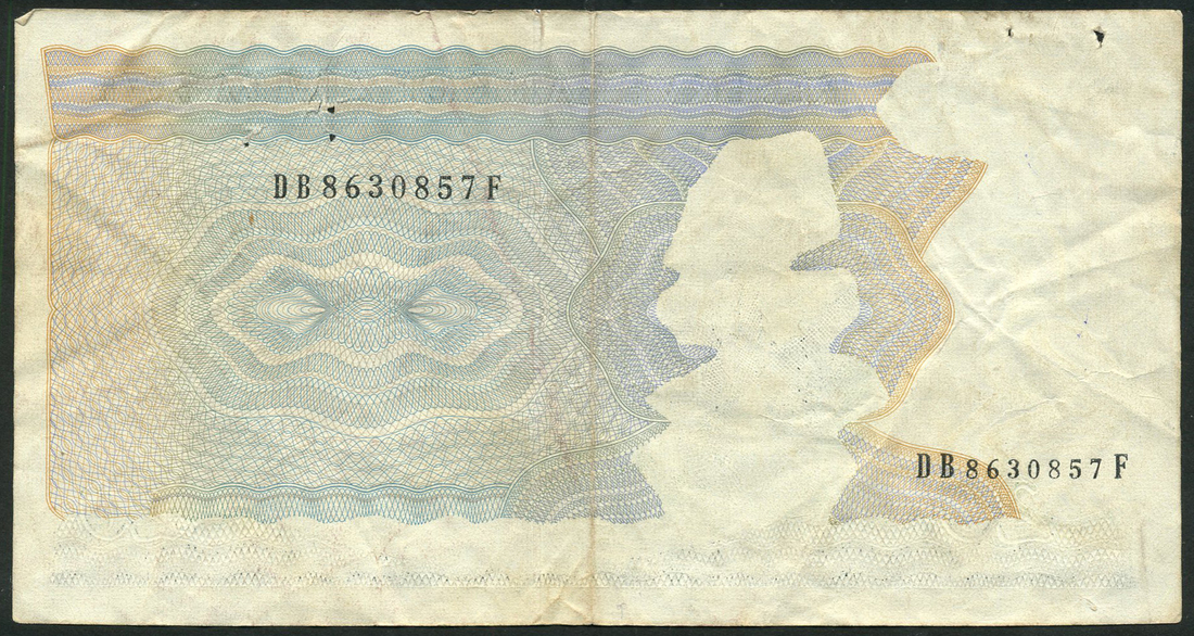 Reserve Bank of Zimbabwe, ERROR: $20, 1994, serial number DB8630857F, underprint and serial number only on obverse, reverse, elephant and Victoria Falls