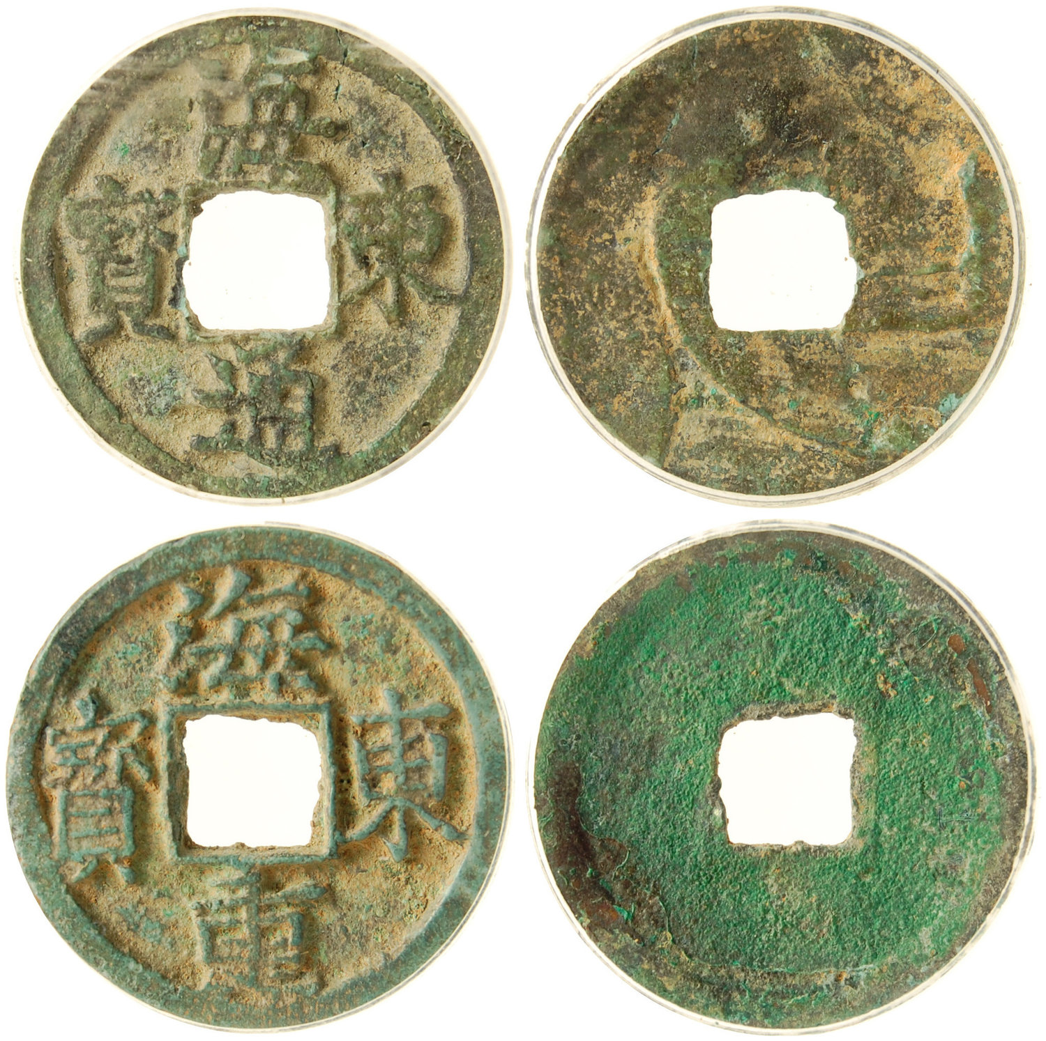 Goryeo Dynasty (Korea), lot of 2x cash coins, Hai Dong Tong Bao and Hai Dong Zhong Bao, 10-12th century, GBCA 70 (diameter 23.5mm, weighs 2.0g) and GBCA 75 (diameter 24.5mm, weighs 3.8g), 2 pieces