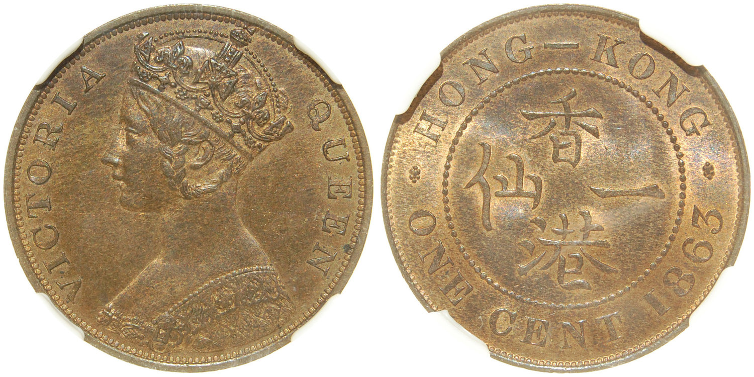 Hong Kong,bronze 1 cent, 1863, bust of Victoria on obverse,