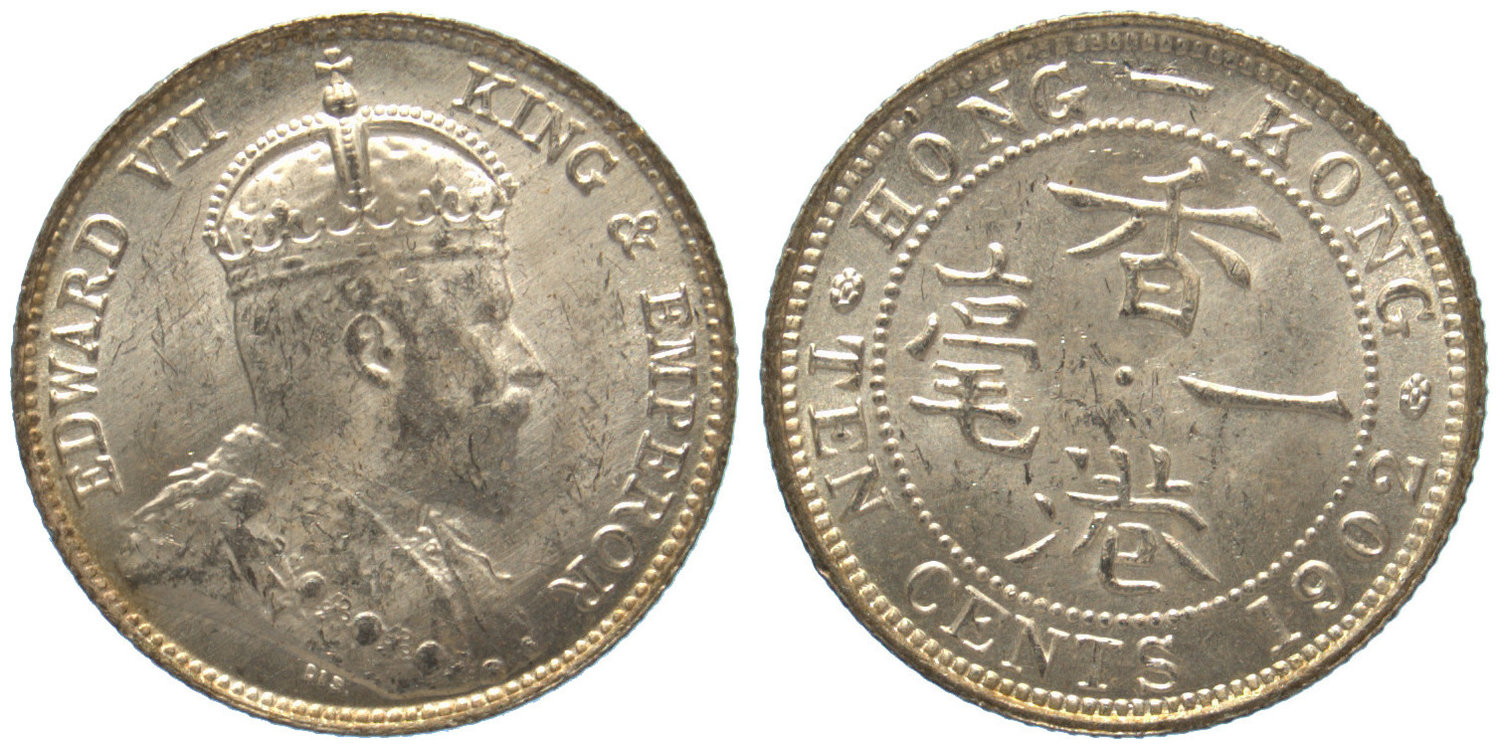 Hong Kong,silver 10 cents, 1902,bust of Edward VII,