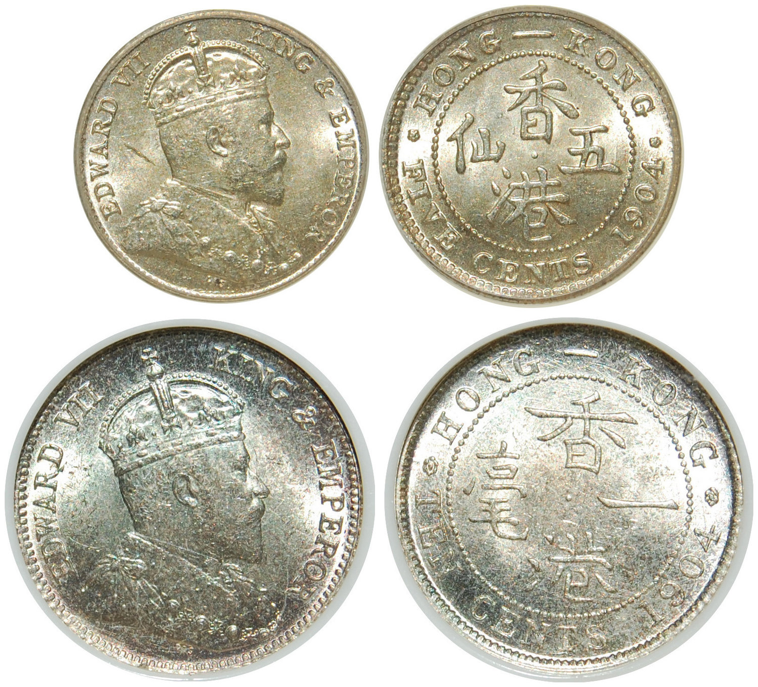 Hong Kong, silver 5 cents and 10 cents, both dated 1904, PCGS MS62 and NGC MS63 (3)