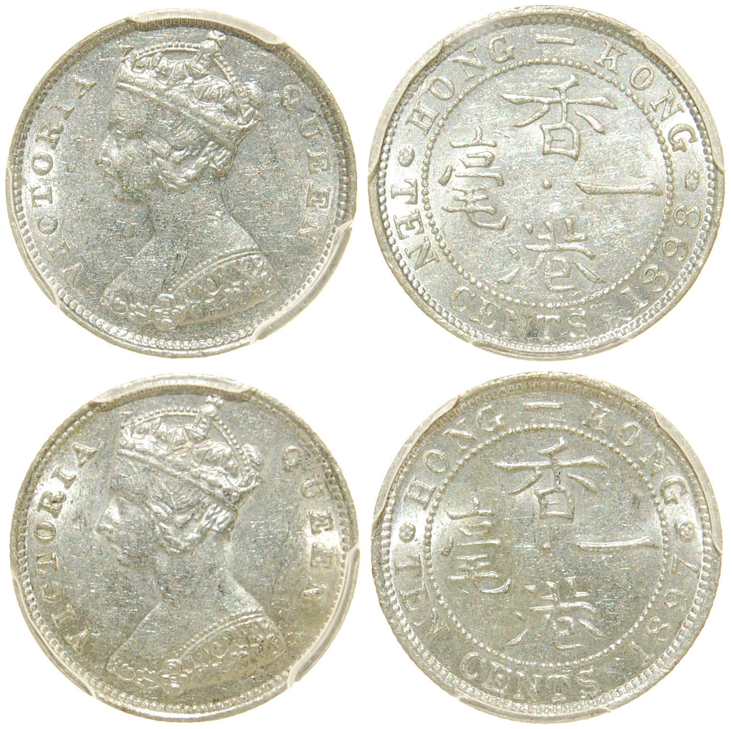 Hong Kong,2 x silver 10 cents, 1897 and 1898, bust of Victoria on obverse,