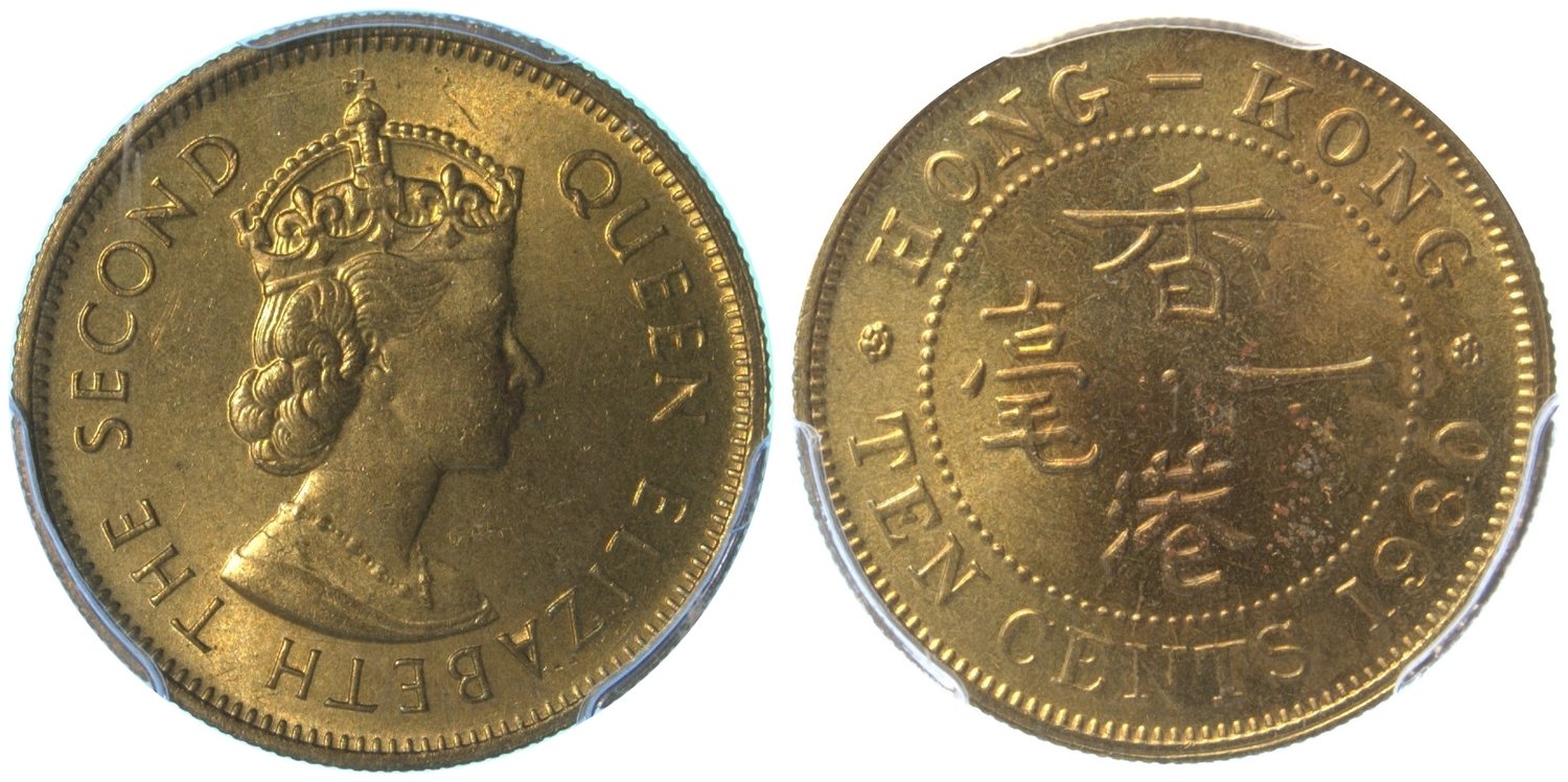 Hong Kong,copper nickel 10 cents, 1980,bust of Elizabeth II,