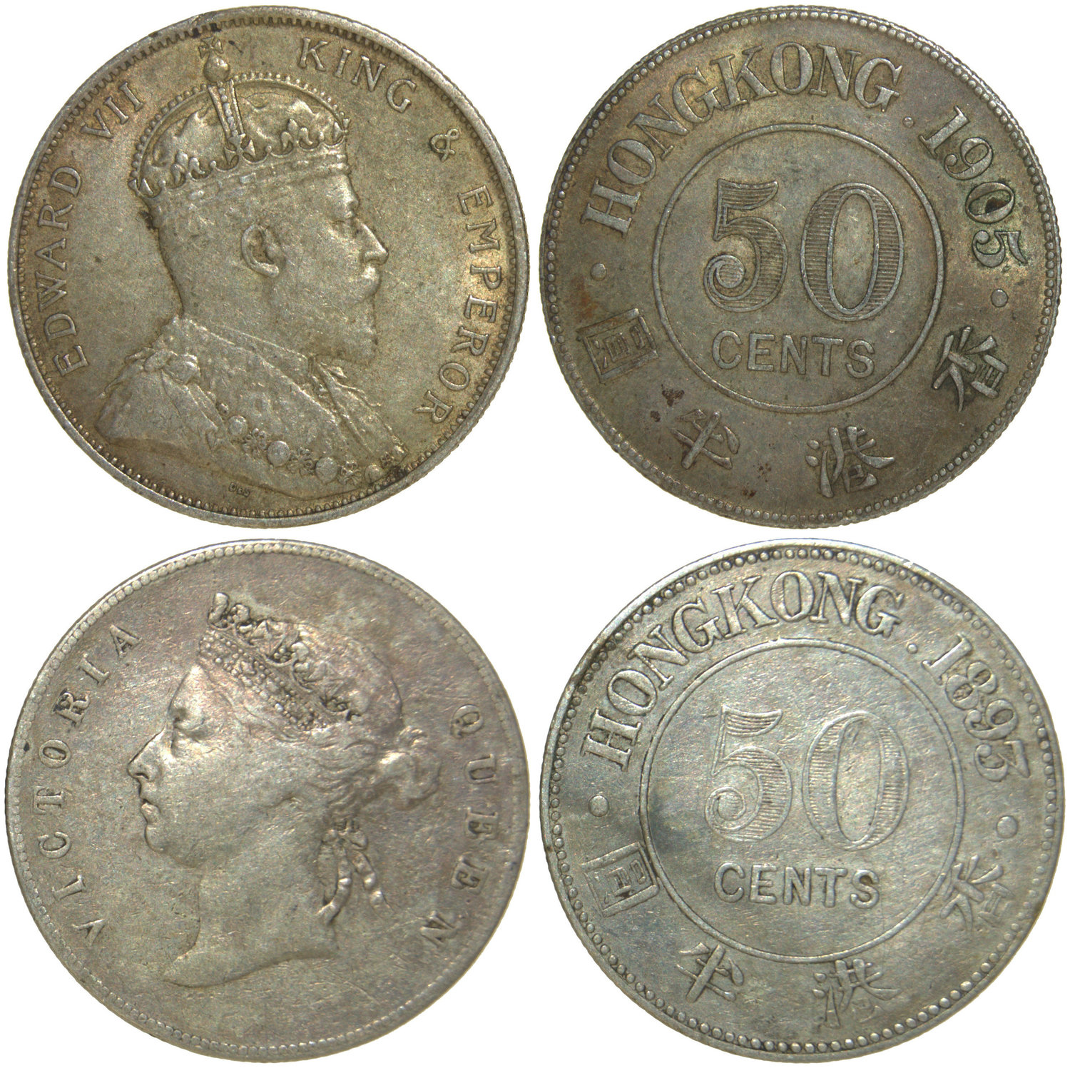 Hong Kong, lot of 2x silver 50 cents, 1893 and 1905, good fine to very fine (2)