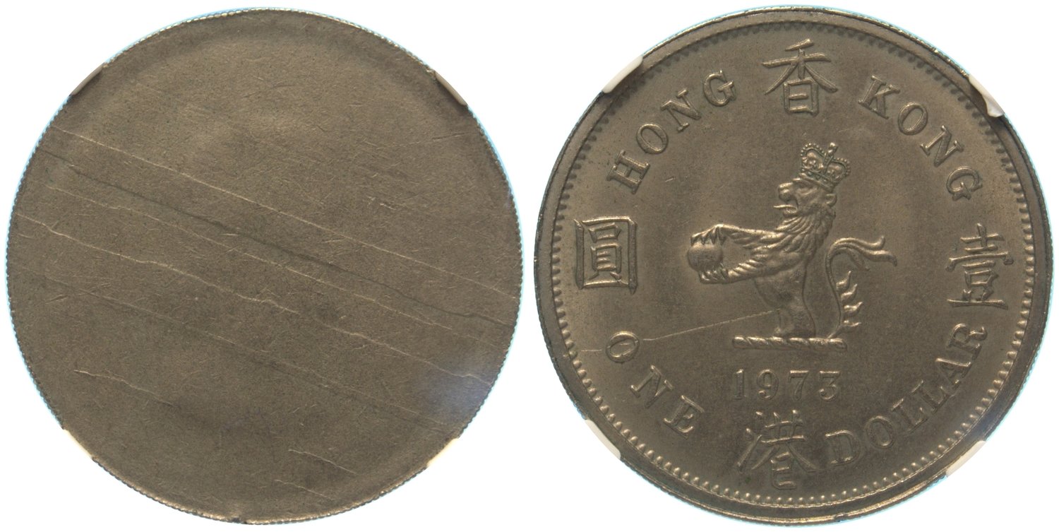 Hong Kong, $1, error, 1973, reverse struck in error,