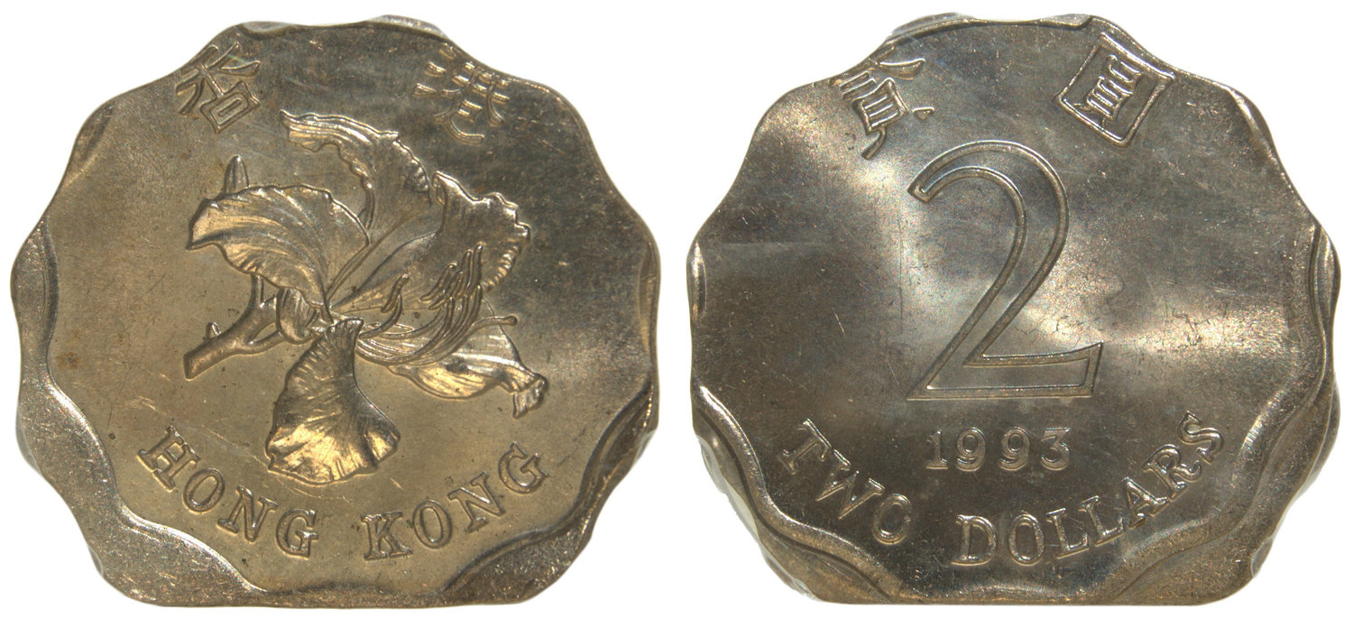 Hong Kong, $2, MINT ERROR, straight end clip,