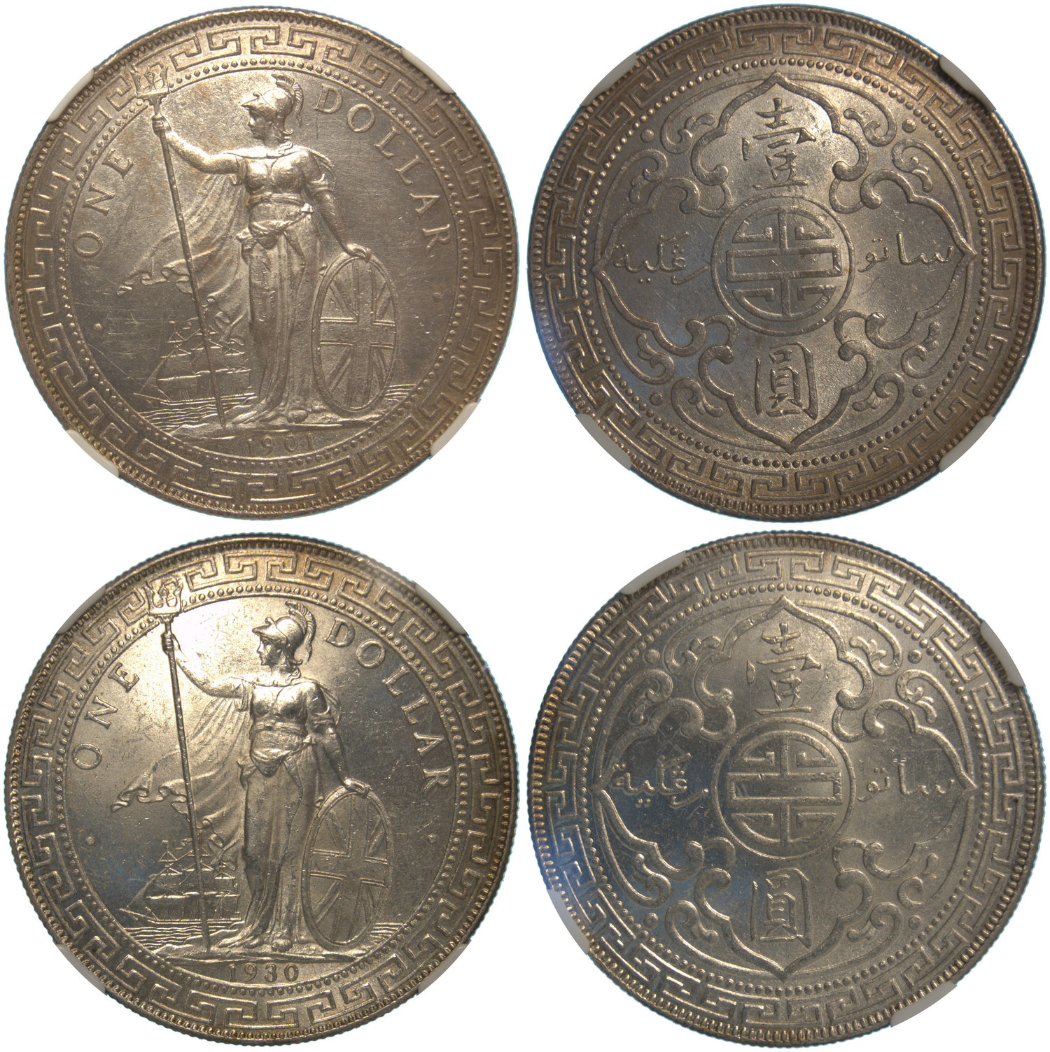 Great Britain, lot of 2x silver trade dollars, 1901-B and 1930-B, Britannia on reverse,