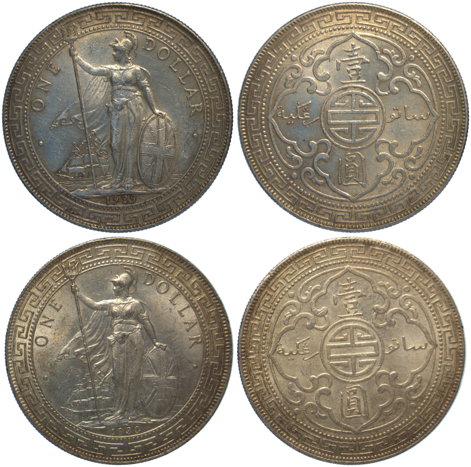Great Britain,a lot of two Silver Trade Dollar, 1929B and 1930,Britannia on obverse,
