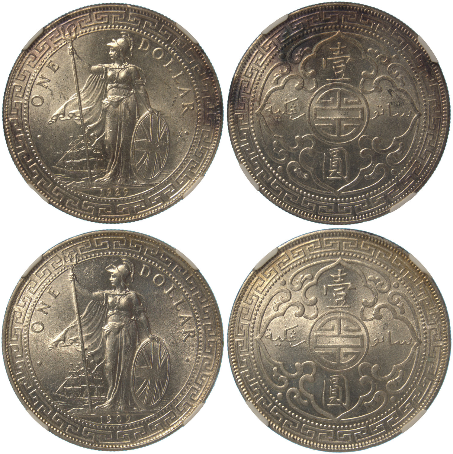 Great Britain, lot of 2x silver trade dollars, 1909-B and 1929-B, Britannia on reverse,