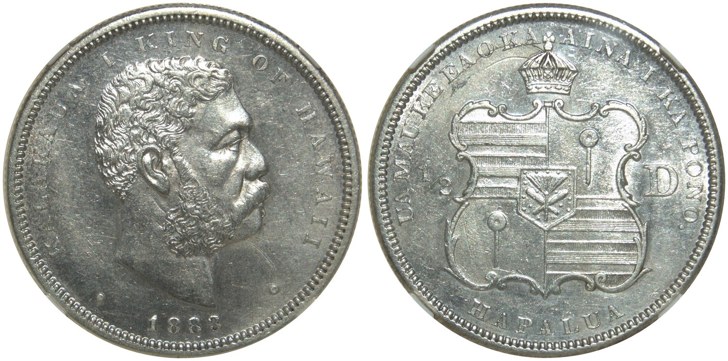 Hawaii,silver 50 cents, 1883,bust of Kalakaua on obverse,