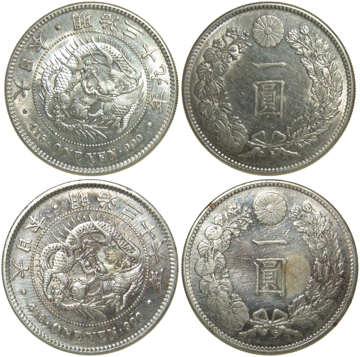 Japan, lot of 2x silver yen, 1903 and 1906, extremely fine to almost uncirculated, lightly cleaned in the past (2)